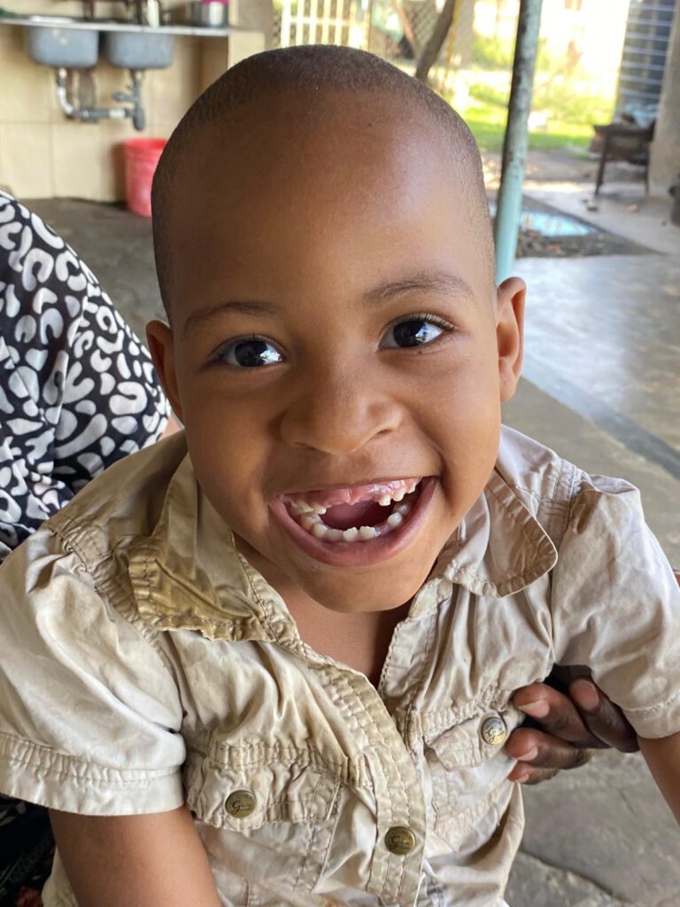 Isabella was found in a pit latrine. Somebody threw her down the hole of the pit latrine to let her die. Luckily Isabella was able to cry loud enough and someone found her just in time. We do not know her age nor anything about her story. We are guessing that she is 3 years old or even 4. Due to her severe disability and her delayed development her age is not easy to guess. But she has the biggest smile ever and is responding so much when talked to. She joined our family at the end of February 2021 when Social Services brought her to us. We are so happy about the additional sunshine in our house! In the past three years Isabella has grown and developed a lot. She understands everything and is eager to talk which is a bit difficult for her because of her disability. She knows how to crawl and to move forward on her own. And Isabella can clearly tell us what she wants and what she does not want!